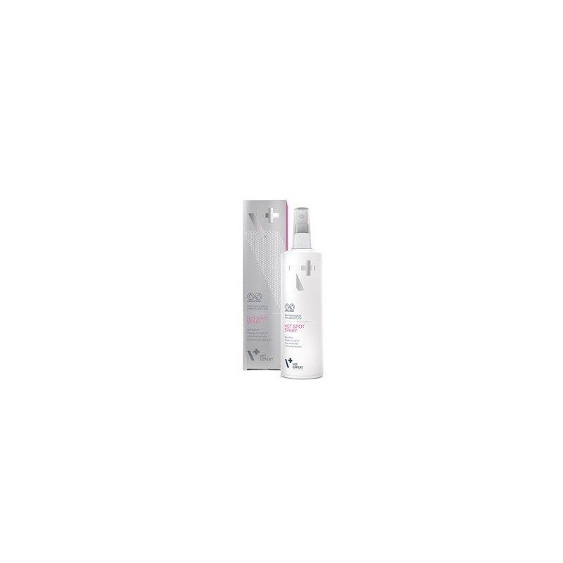 Hot Spot spray VetExpert es un producto de uso local en gatos y perros como tratamiento en heridas, adyuvante en alergias, lesiones cutáneas y como tratamiento de primera línea para un arañazo o piel irritada.