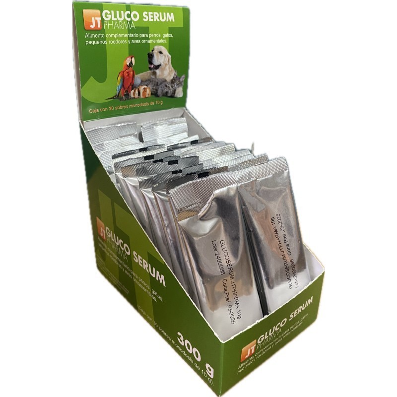Suero glucosado vía oral especialmente formulado para perros, gatos y animales exóticos. Esta nueva presentación viene ahora en caja expositora con 30 sobres monodosis de 10 g, diseñada para facilitar su dispensación y asegurar una máxima palatabilidad.