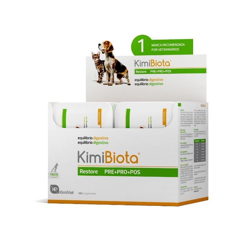 KimiBiota es un alimento compuesto complementario palatable optimizado con prébióticos, probióticos y pós-bióticos que contribuye al mantenimiento fisiológico de una función intestinal saludable, KimiBiota puede ser útil en todas las situaciones de soporte nutricional en el caso de anomalías digestivas y convalecencia de las mismas.