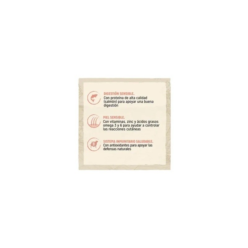 DIGESTIÓN SENSIBLE. Con proteína de calidad como Salmón, para ayudar a apoyar una buena digestión.