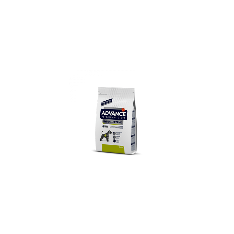 ADVANCE VETERINARY DIETS - Hypoallergenic es un alimento dietético completo para cachorros y perros adultos, creado para reducir las intolerancias a ingredientes y nutrientes, con una única fuente seleccionada de proteína y una sola fuente seleccionada de hidratos de carbono.