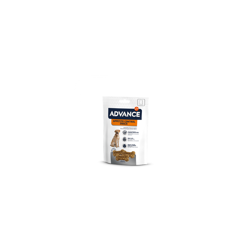 ADVANCE Apettite Control es una galleta saludable y apetitosa que ayuda a controlar el apetito de tu perro, gracias a su alto contenido en fibra de efecto saciante, y además con solo un 2 % de grasa. Para maximizar el efecto de saciedad, se recomienda administrar el snack entre 1 y 3 horas antes de cada comida.
