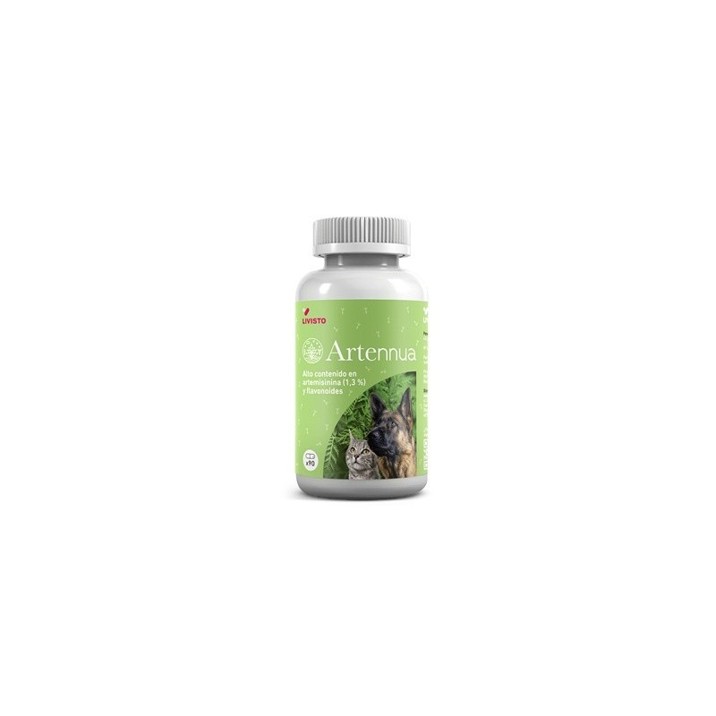 Las cápsulas Artennua son un suplemento alimenticio 100% vegetal para mascotas. Artennua actúa como inmunopotenciador, agente purificador y estimulador del apetito para mascotas. Cada cápsula contiene 200 mg de hojas de Artemisia annua con un alto contenido de artemisinina (1.1% – 2.3%) y flavonoides (casticina y eupatorina) y, por lo tanto, con un potencial terapéutico muy alto. Las cápsulas Artennua son un producto orgánico cultivado en las Islas Canarias.
