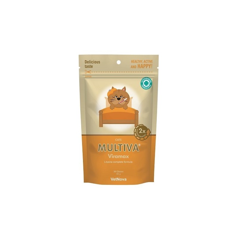 Suplemento Nutracéutico Rico en L-lisina, Vitaminas, Formulado en Chews de Alta Palatabilidad para tratamiento de herpesvirus en gatos.