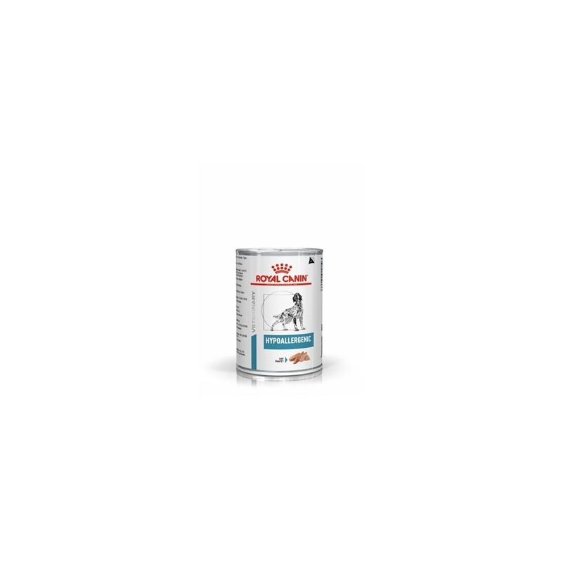 Royal Canin Hypoallergenic lata es un alimento húmedo ideal para perros con alergias e intolerancias alimentarias y con trastornos intestinales