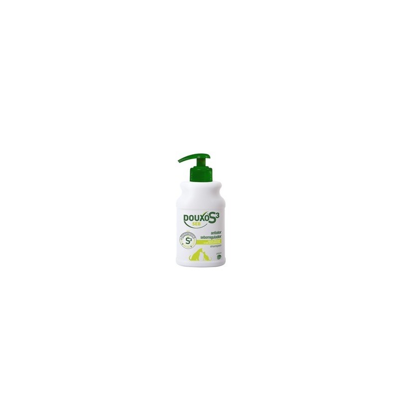 DOUXO S3 SEB Champú para perros y gatos con la piel grasa o con descamación: reduce la caspa, el exceso degrasa y el olor desagradable gracias a la acción seborreguladora de Seboliance, a la vez que hidrata y ayuda a mantener las condiciones fisiológicas de la piel. Reestructura y ayuda a desenredar el pelo dejando el pelaje sedoso y brillante.