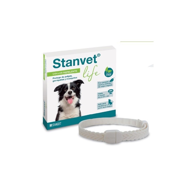 Stanvet Life es un collar antiparasitario para perros que previene y trata mosquitos, pulgas y garrapatas. Stanvet Life es un producto natural a base de aceites esenciales.