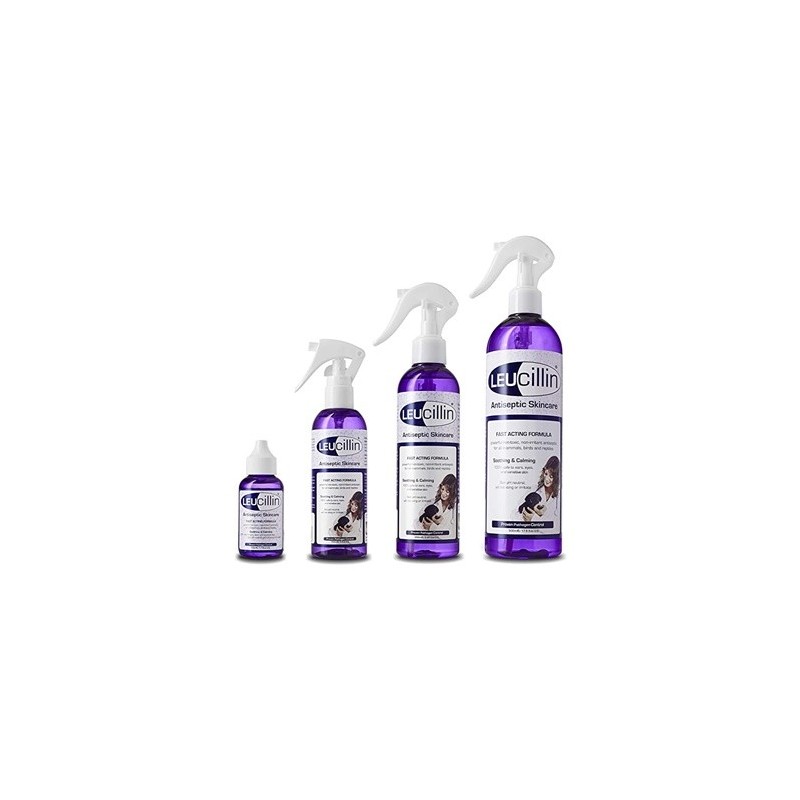 Apto para mamíferos, incluidos los humanos, aves y reptiles. Leucillin es una solución innovadora, asequible y de confianza, para su utilización en una amplia variedad de afecciones de la piel de los animales.