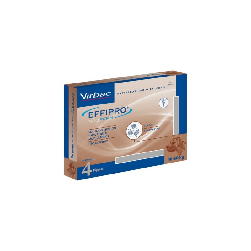 - 1 pipeta de 4,02 ml para perros con pesos entre 40-60 kg.