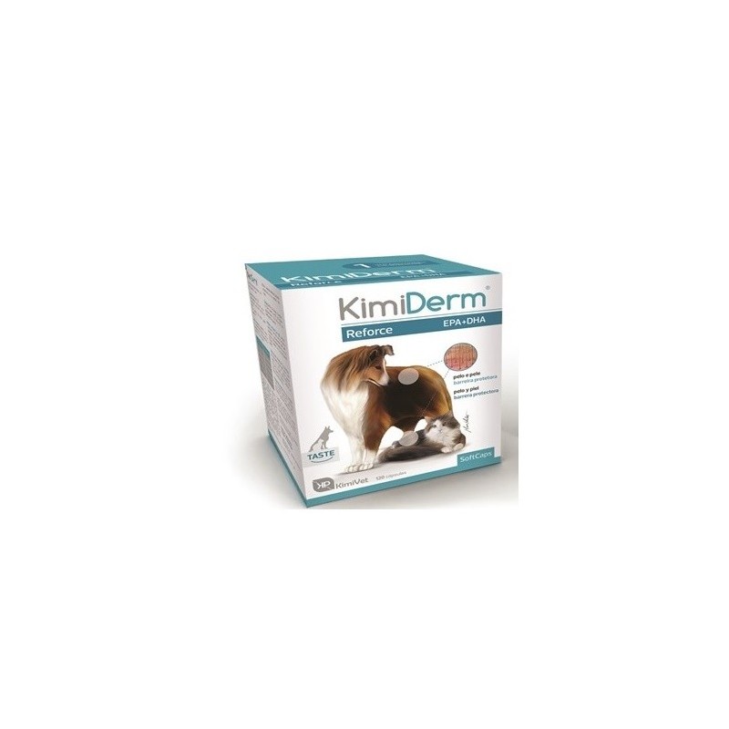 KimiDerm® se usa para apoyar la función dérmica en dermatosis y alopecia causadas por alergias (dermatitis alérgica por pulgas (DAP), atopia, hipersensibilidad alimentaria, dermatitis miliar felina y granuloma eosinofílico complejo), queratosis borreica, condiciones -inmunes (pénfigo, lupus eritematoso complejo), leishmaniasis, dermatitis bacteriana recurrente, dermatosis pruriginosas en general, pérdida excesiva de cabello, cabello opaco y quebradizo y cambios de pelaje.