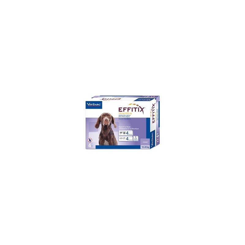 Effitix es un antiparasitario externo para perros que se aplica mediante pipetas muy fáciles de usar que marcan la diferencia, porque mientras otras pipetas actúan durante 3 semanas, EFFITIX ofrece cuatro semanas de protección frente a los principales parásitos.