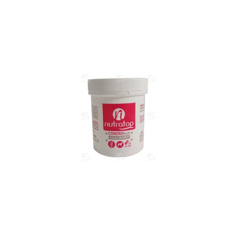 Nutratop Condro Plus Razas Grandes es un suplemento nutricional avanzado que ayuda a tu perro a mejorar la movilidad y a sufrir menos dolor en cualquier proceso osteoarticular o durante el crecimiento, especialmente en razas grandes y gigantes.