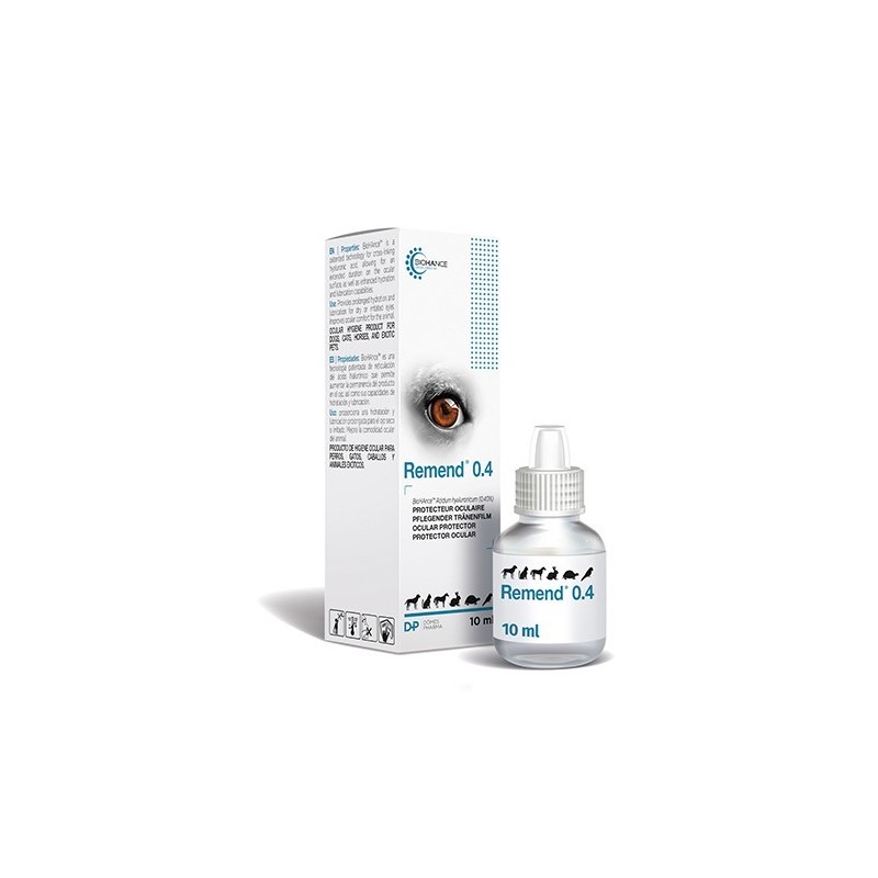 Remend 0,4 proporciona una hidratación y lubricación prolongada para el ojo seco o irritado. Mejora la comodidad ocular del animal.