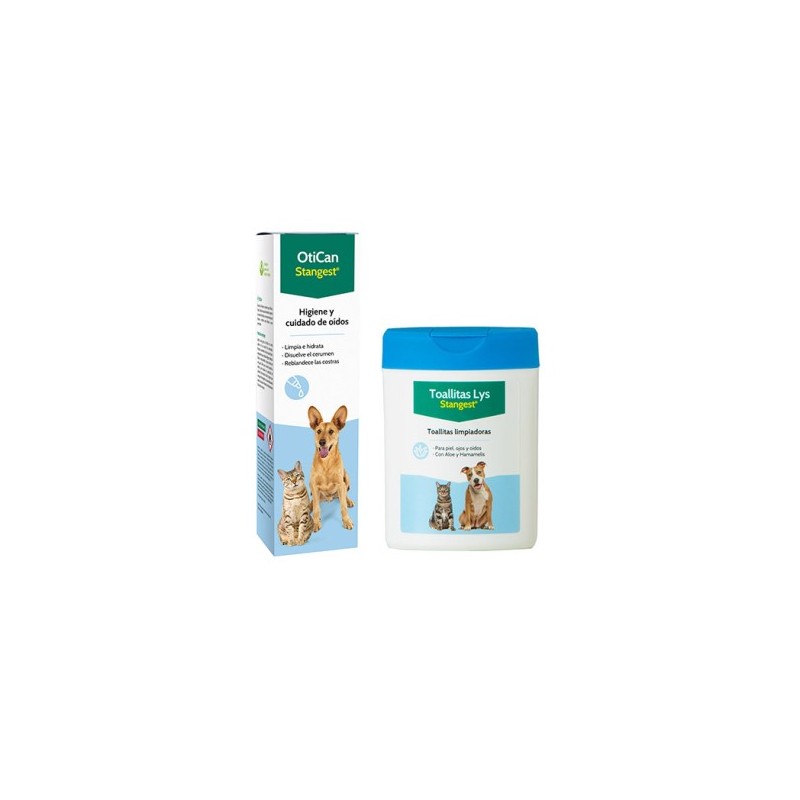 Otican solución limpiadora equilibrada para el mantenimiento de la higiene del pabellón y el canal auricular de perros y gatos. Por su acción emoliente, elimina la suciedad, las costras y el exceso de cerumen, manteniendo los oídos sanos y limpios. Toallitas higiénicas de un solo uso para la limpieza de los ojos y del pabellón auricular de perros y gatos. Impregnadas de una solución epitelizante diseñada para zonas sensibles.