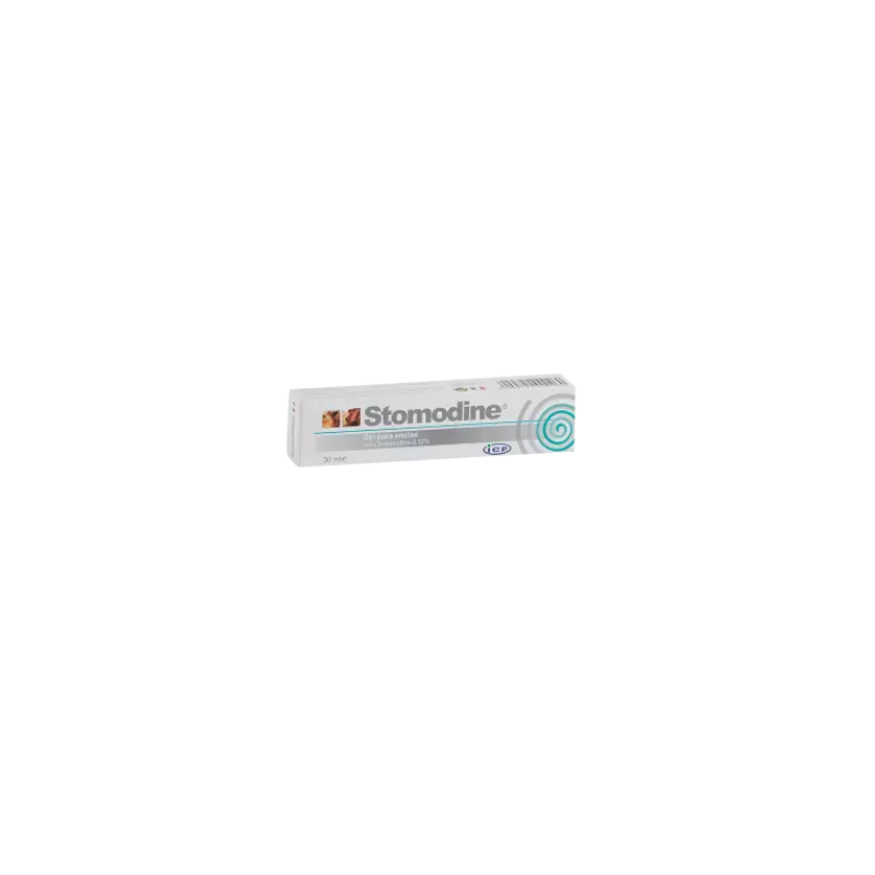 Stomodine gel oral para el tratamiento y prevención de enfermedades de la cavidad bucal en perros y gatos.