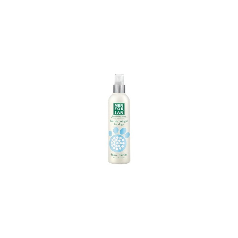 Agua de colonia talco para perros con fragancias frutales naturales especialmente creadas para proporcionar después del baño un olor fresco y un intenso efecto desodorante muy agradable respetando la piel y las propiedades olfativas del animal. No contienen alcohol y tienen ph neutro, careciendo de efectos irritantes y evitando que el perro estornude después de su aplicación.