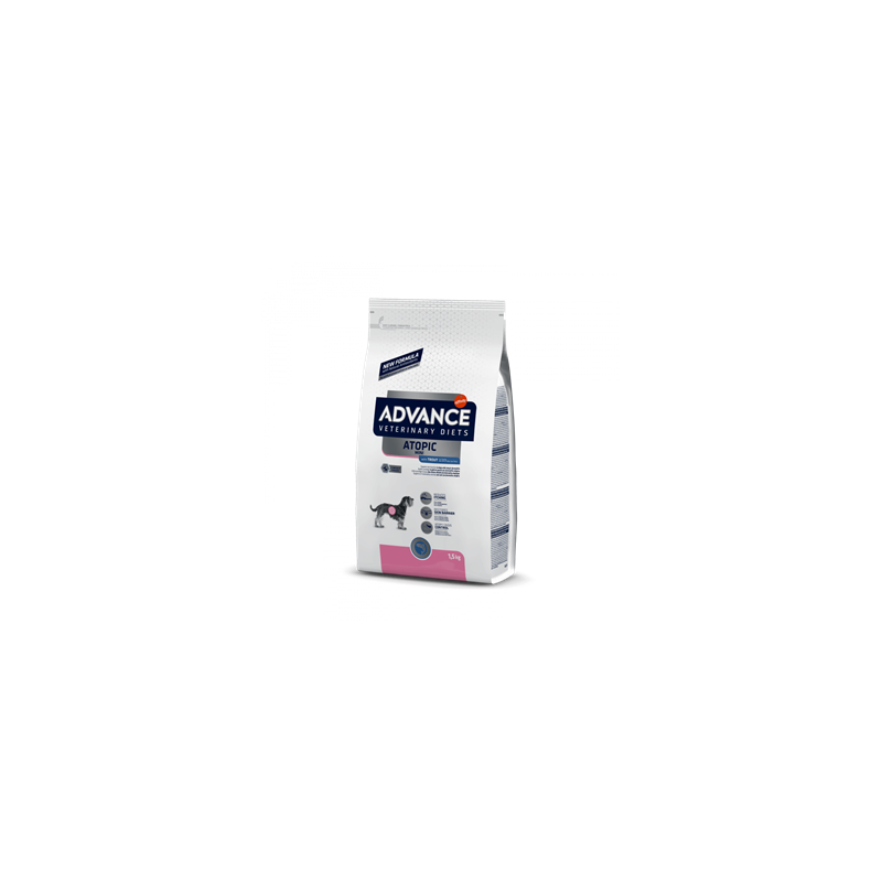 ADVANCE VETERINARY DIETS ATOPIC MINI es un alimento dietético completo para perros mini , formulado para cuidar de la piel en caso de dermatitis y pérdida de pelo excesiva, así como para reducir de intolerancias a ingredientes y nutrientes.