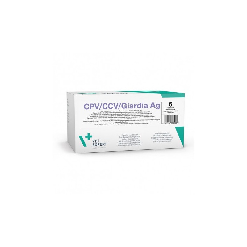 Detecta los antígenos del parvovirus, coronavirus y Giardia en perros. Sensibilidad: CPV 99,9%, CCV 93,1% Giardia 99,9% / Especificación: CPV 99,9%, CCV 97,5% Giardia 99,9%